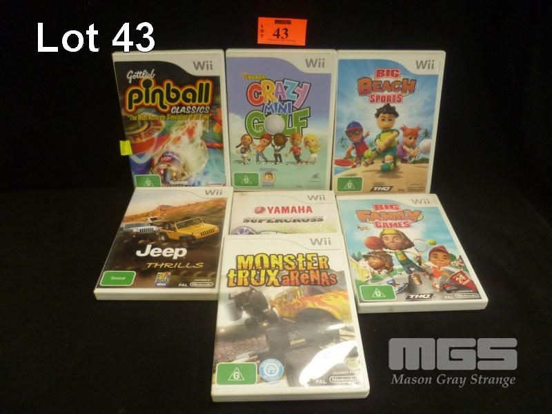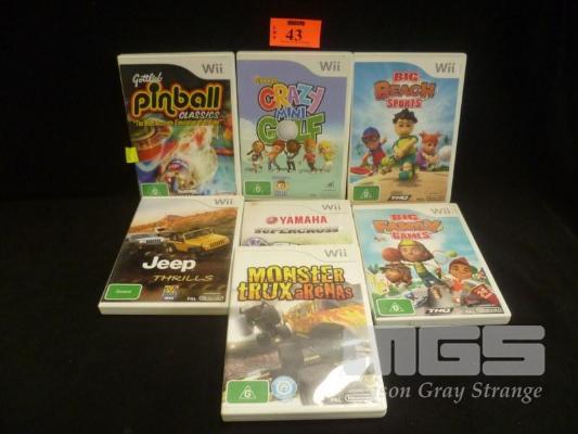 7 x ASSORTED Wii GAMES, PINBALL CLASSICS, BIG FAMILY GAMES, JEEP THRILLS, ETC