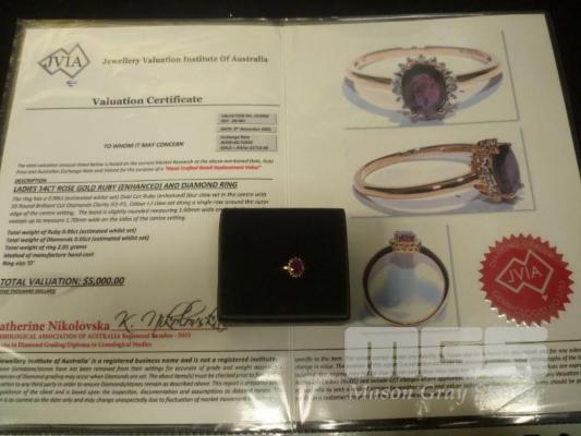 14K ROSE GOLD RUBY (ENHANCED) DIAMOND RING