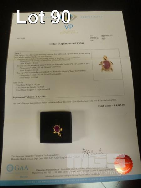 9ct YELLOW GOLD, RUBY AND DIAMOND TURTLE PENDANT, 2.32ct RUBY & 26 ROUND DIAMONDS (0.14ct TDW) VALUATION AT $4345.00