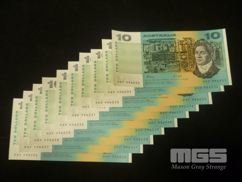 1991 10 x 10 DOLLAR FRAZER STONE NOTE CONSEC UNC
