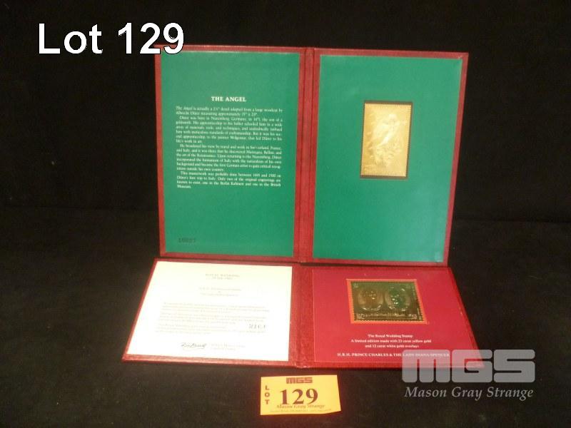 2 X 22 CARAT GOLD STAMP SETS, INC; 1981 ROYAL WEDDING, H.R.H. THE PRINCE OF WALES & THE LADY DIANA SPENCER 1981 CHRISTMAS STAFFA SCOTLAND