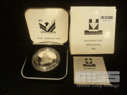 ROYAL AUSTRALIAN MINT, 1986, SOUTH AUSTRALIA STATE SERIES, $10 SILVER PROOF COIN