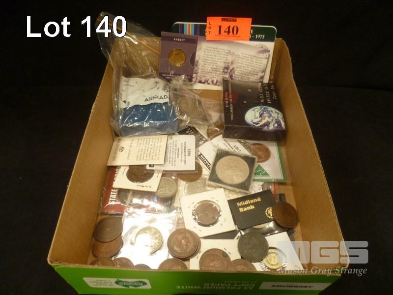 COLLECTION OF AUST COINS PENNYS ETC + WORLD COINS COMMONWEALTH COINS MOSTLY