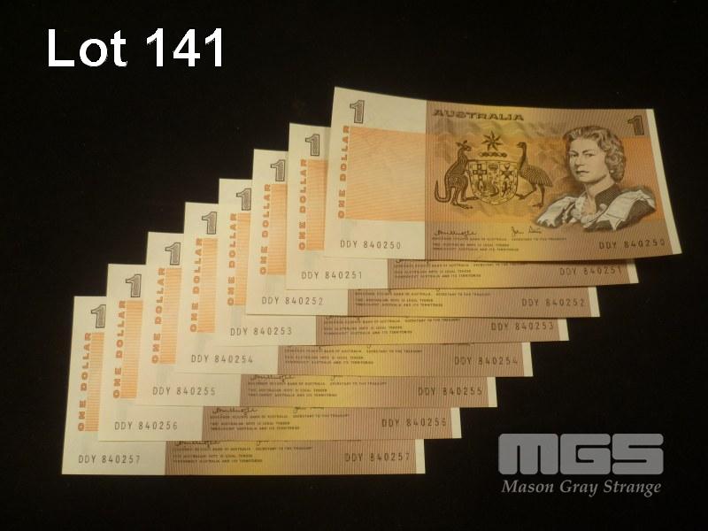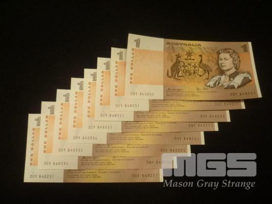 1977 8 X 1 DOLLAR NOTES CONSECUTIVE KNIGHT STONE CRISP UNC