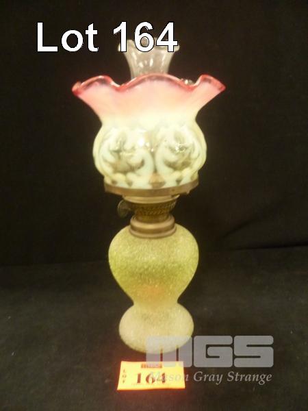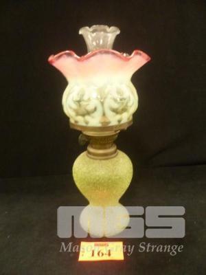 YELLOW GLASS KEROSENE LAMP & VASELINE SHADE