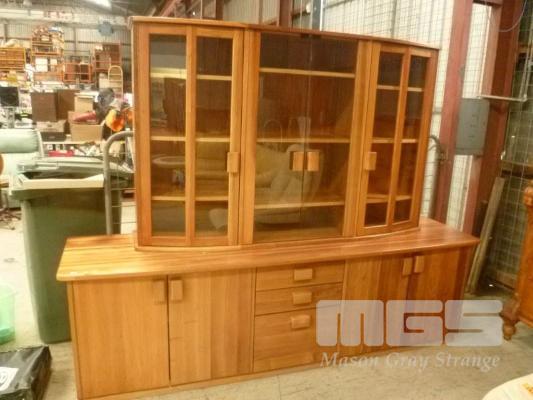 SOLID TIMBER 2 PIECE WALL UNIT, GLAZED DOORS, UNDERSTORAGE