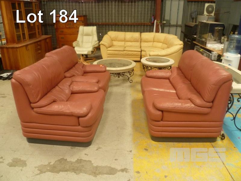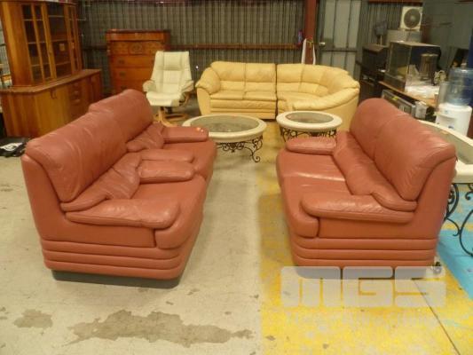 PEGAR LAY-FRAY, PINK LEATHER 3 PIECE LOUNGE SUITE INC 2 SEATER & 2 x SINGLES
