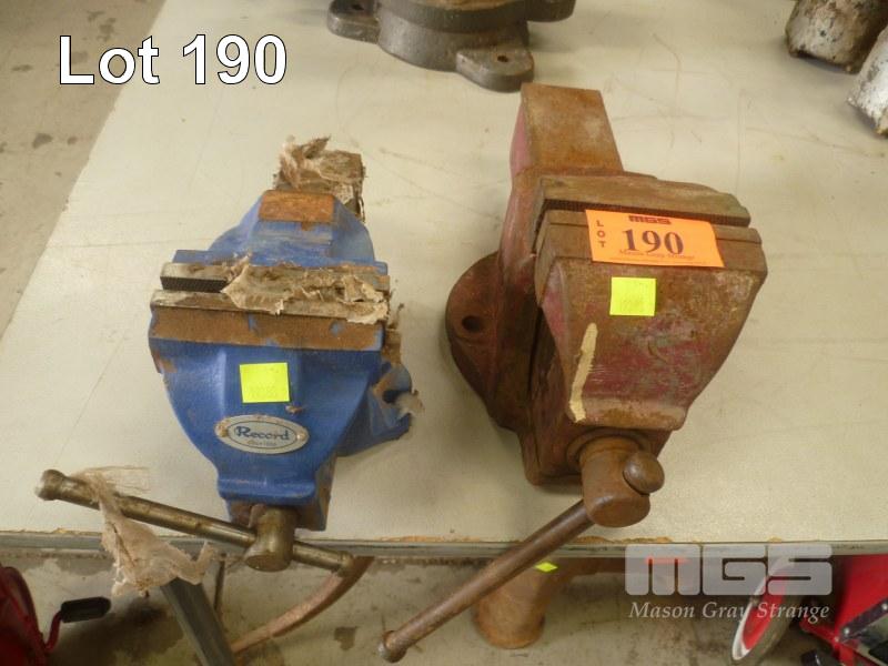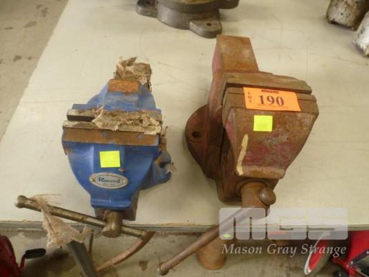 BLUE RECORD "1 TON" BENCH VISE AND DAWN "4 SP" BENCH VICE