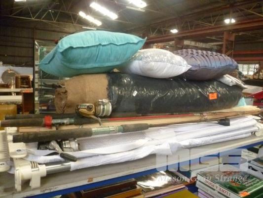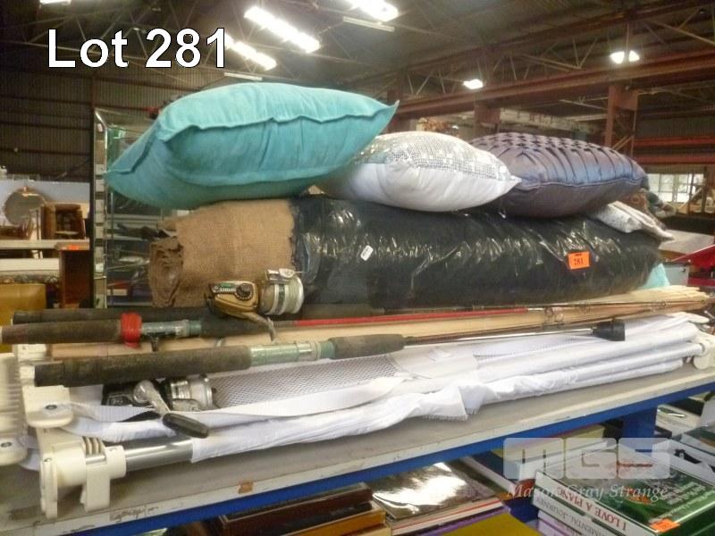 COLLAPSIBLE COT, FISHING RODS/REELS, GARDEN STAKES,