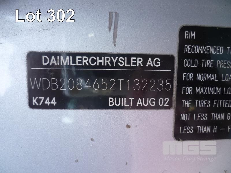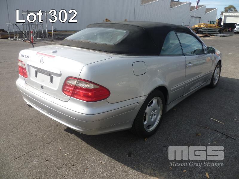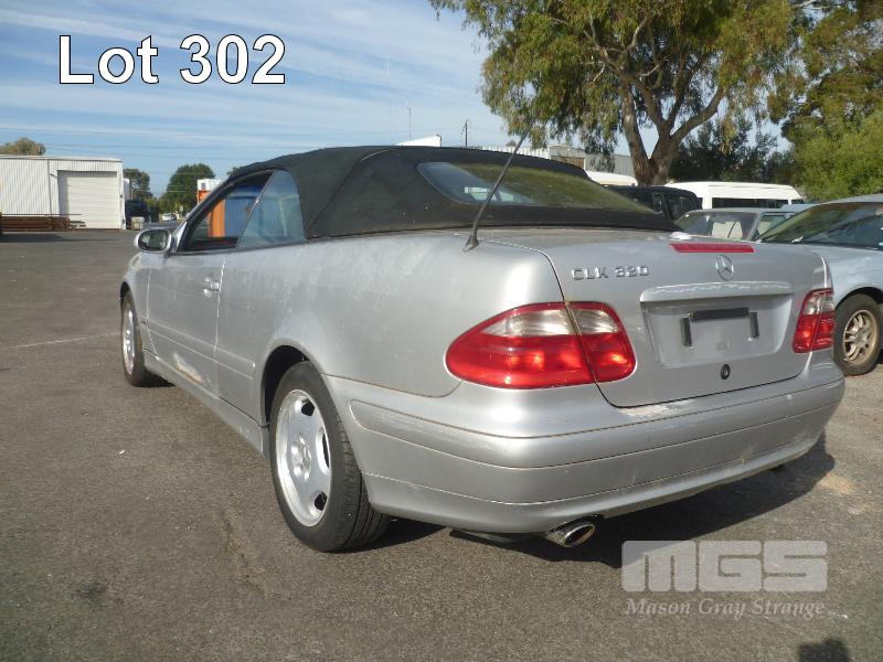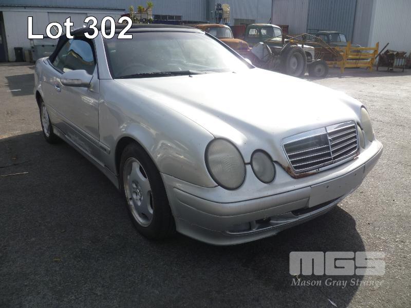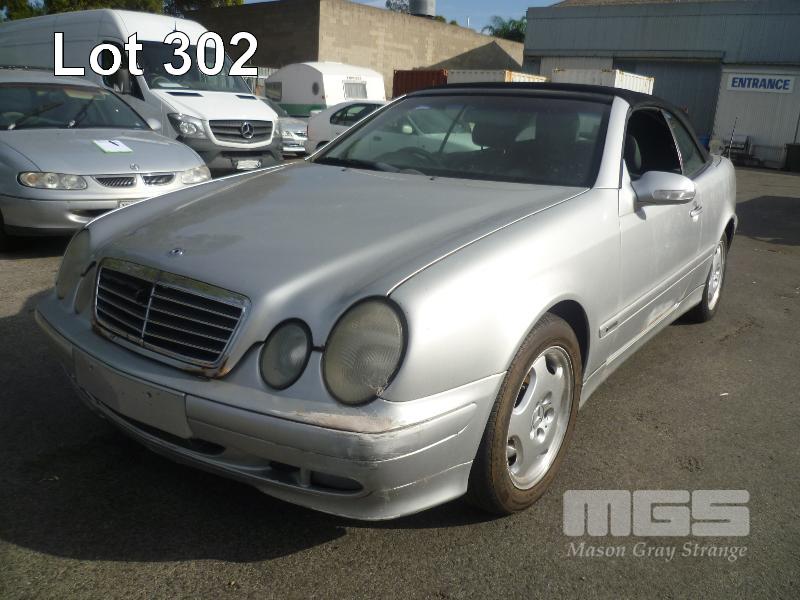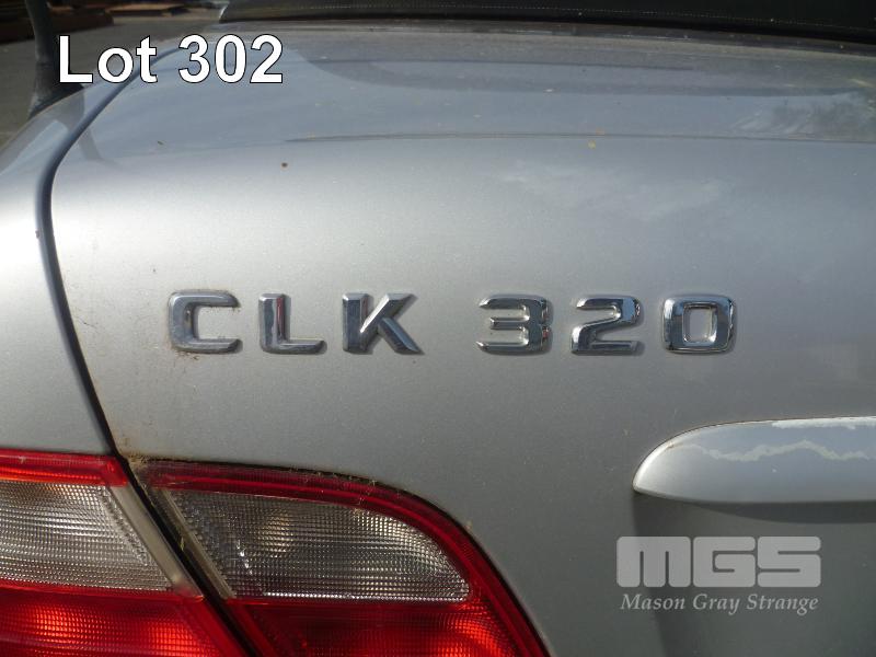 2002 MERCEDES CLK 320 ELEGANCE CONVERTIBLE REG: NO PLATES (EXPIRED) VIN: WDB2084652T132235 ENG: 11294031324298 ODO: 171,320 6 CYL, AUTOMATIC, PETROL, SILVER, 2 DOORS, 4 SEAT, AIR BAG, AIR CON, ALLOY WHEELS, CD PLAYER, CENTRAL LOCKING, POWER STEERING, POWER WINDOWS, SPARE WHEEL (NO PAPERS, WITH 1 KEY/S, NO OWNER'S MANUAL, NO SERVICE BOOKS) CONDITION: DOORS - RUST LOWER SECTION FRONT/REAR BUMPERS - SCRATCHES BODY - PAINT FADED BONNET - DENTS FRONT GRILL - DAMAGED BONNET CATCH - REQUIRES REPAIR