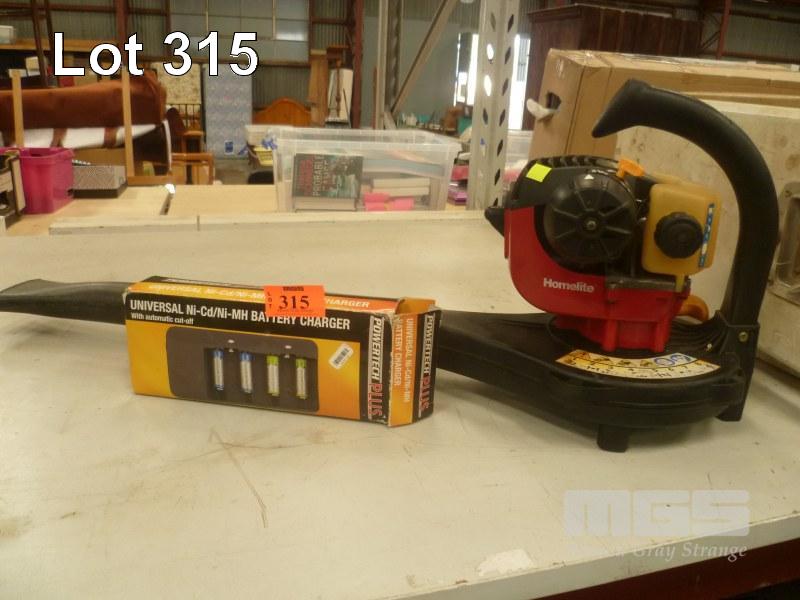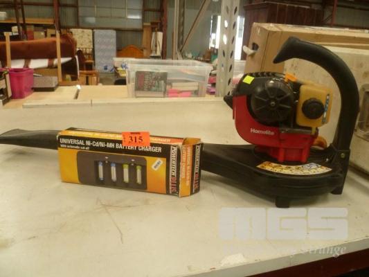 PETROL BLOWER, HOMELITE AND UNIVERSAL BATTERY CHARGER