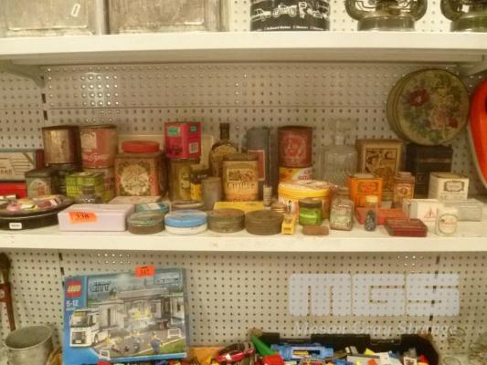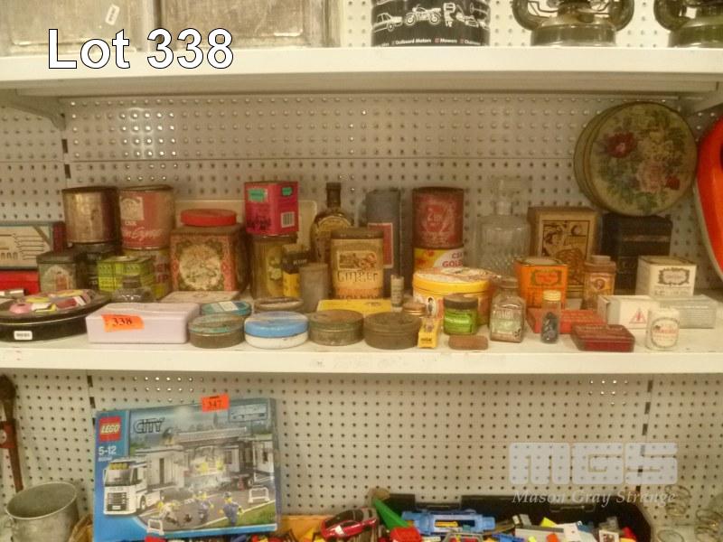 ASSORTED COLLECTABLE TINS, BOTTLES, ETC