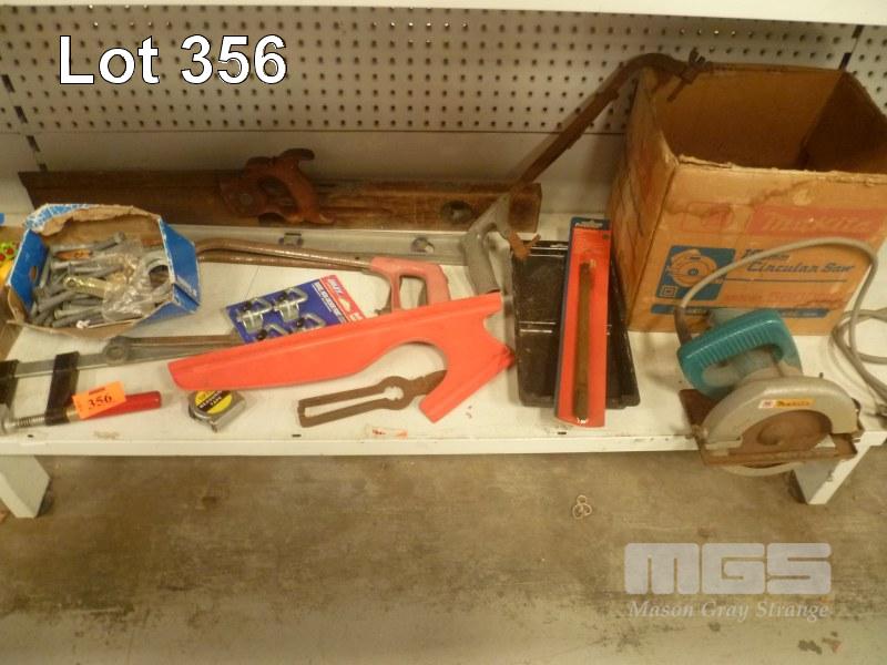 TOOLS INCL MAKITA CIRCULAR SAW, VINTAGE LEVELS & OTHER SAWS
