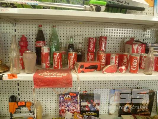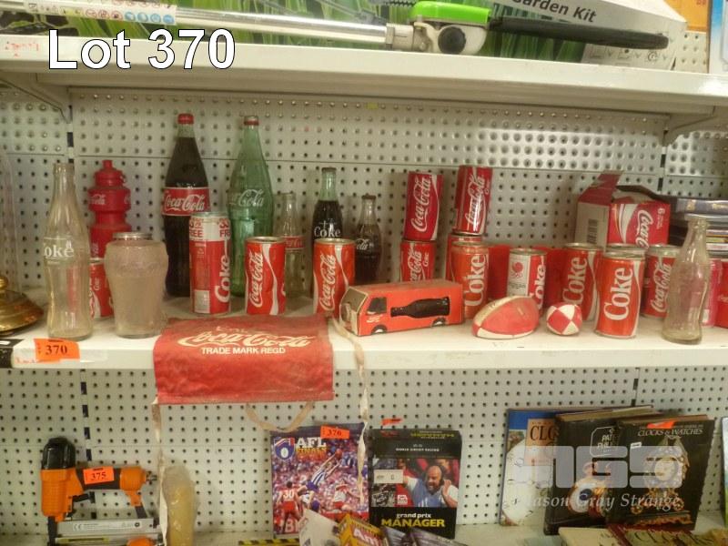 COCA COLA MEMORABILIA, INCL CANS, BOTTLES, ETC.