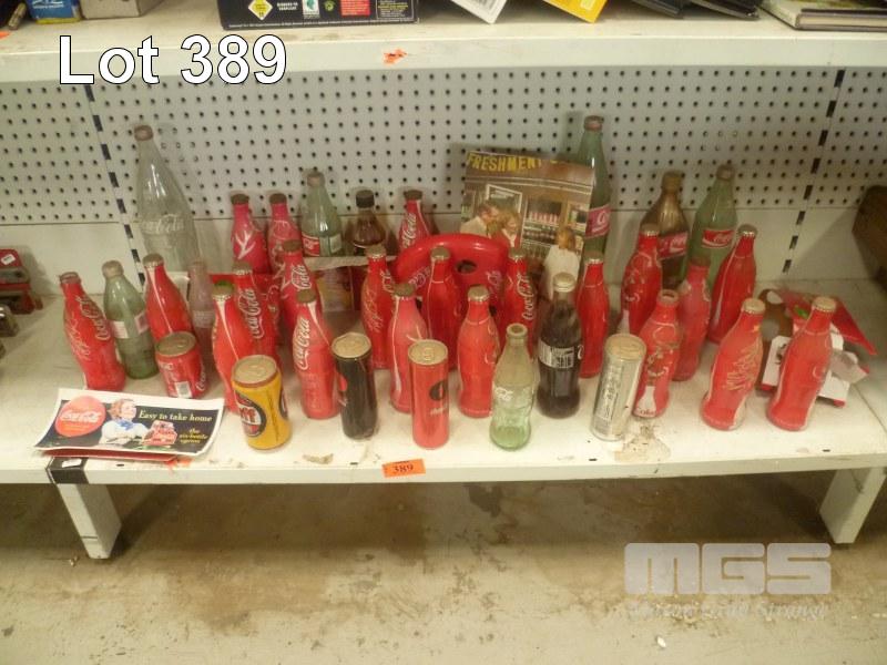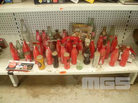 COCA COLA MEMORABILIA, INCL CANS, BOTTLES, ETC.