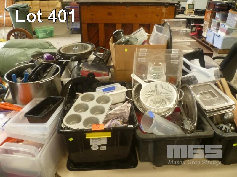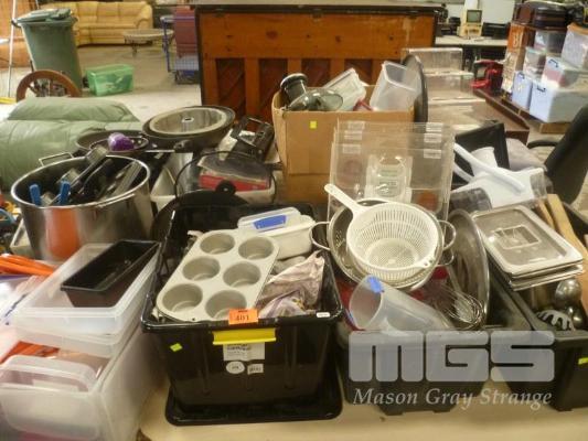 ASSORTED KITCHENWARE, CATERING UTENSILS, ETC, 1 x TABLE