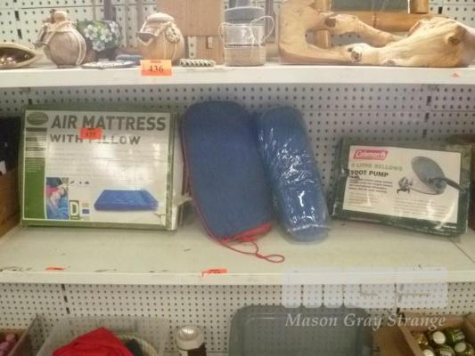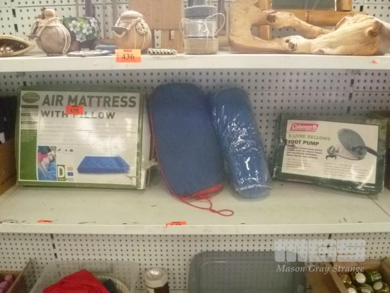 CAMP AIR MATTRESS, FOOT PUMP & SLEEPING BAGS