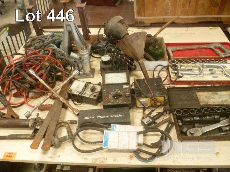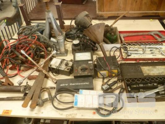 SOCKET SETS, JACK STANDS, OILER,S GREASE GUN, BATTERY CHARGERS, AIR PUMPS, JACK, JUMPER LEADS, ETC