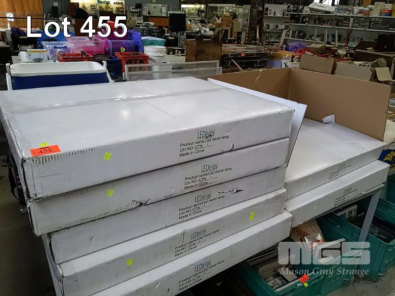 7 x LED BACKLIT MIRRORS (800 x 600MM) AND SUNDRY ITEMS INCLUDING ESKIES AND BARBELL.