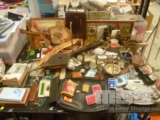 ASSORTED TREEN, CLOCKS, DRAFTSMAN'S TOOLS, ETC, 1 x TABLE