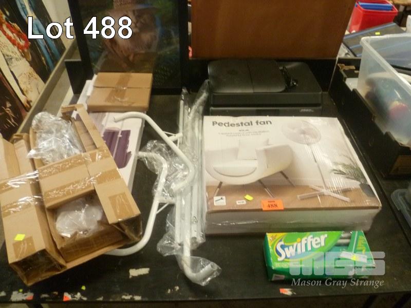 HP OFFICEJET 4650, PEDESTAL FAN, GARMENT RACK, ETC, 1 x TABLE