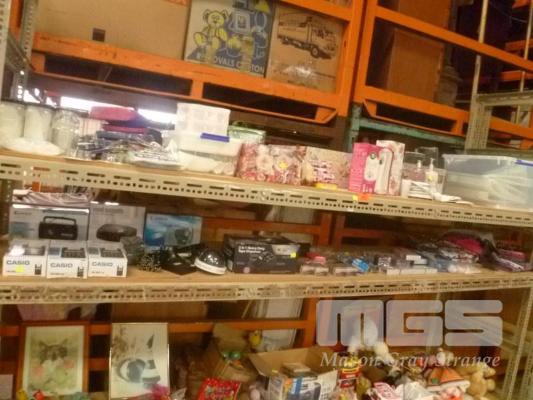 CONTAINERS, OFFICE STATIONERY, SOAPS, ETC, 2 x SHELVES