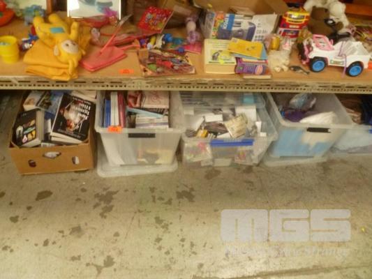 ASSORTED BOOKS, OFFICE STATIONERY, CLOTHING, ETC, 5 x TUBS