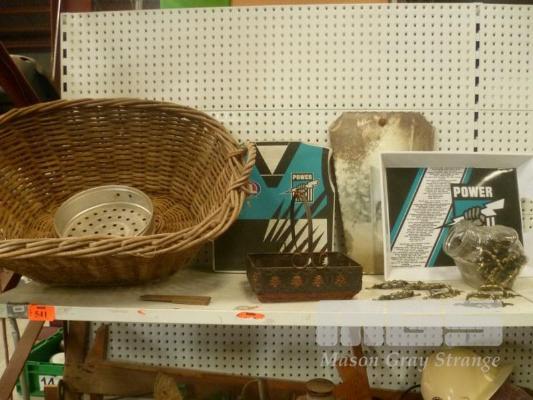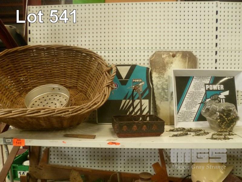 VINTAGE CANE BASKET, PORT POWER MEMORABILIA, DOOR/WINDOW HANDLE & VINTAGE MIRROR