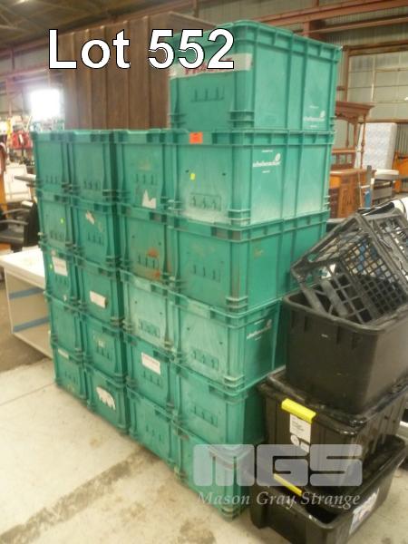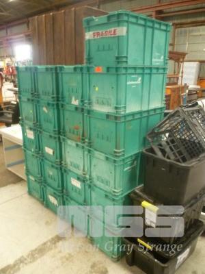 21 x GREEN PLASTIC STACKABLE TUBS, ETC