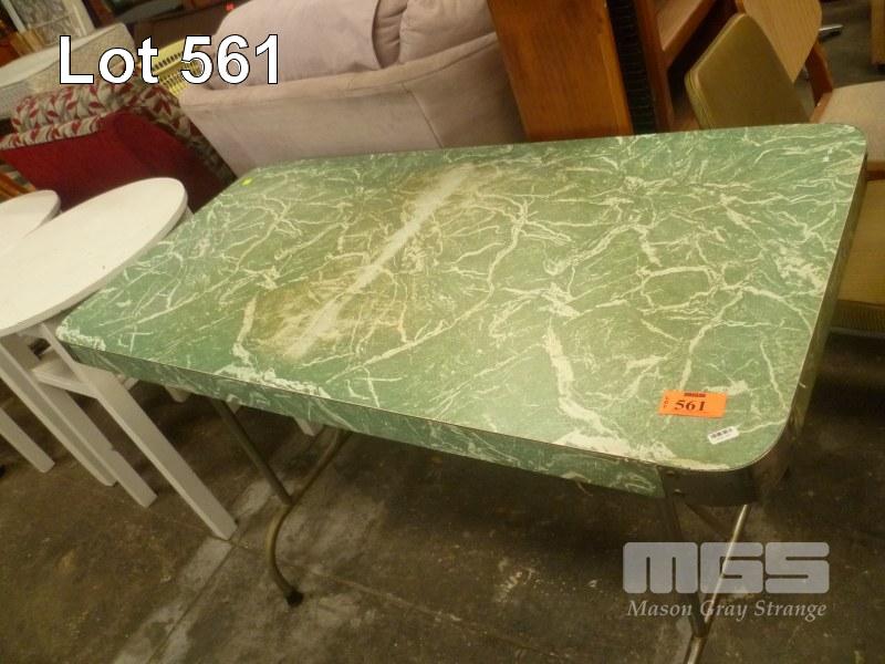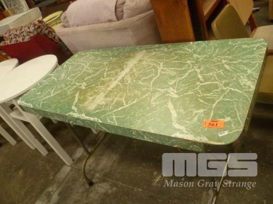 ART DECO, RECTANGULAR DINING TABLE, GREEN MARBLE LOOK LAMINATE TOP (FADED)