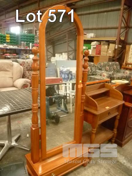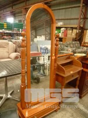 PINE CHEVAL MIRROR WITH SINGLE DRAWER UNDER STORAGE