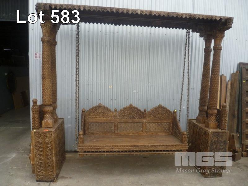ORNATE CARVED INDIAN PAGODA STYLE SWING CHAIR