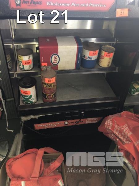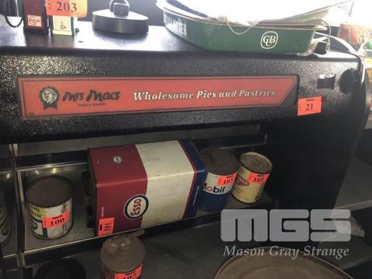 MRS MACS PIE WARMER DISPLAY UNIT 3 TIER WITH KEY, 240v WITH 5 TIER TIMBER/STEEL PRODUCT STAND 550 x 440 x 1350mm (H)