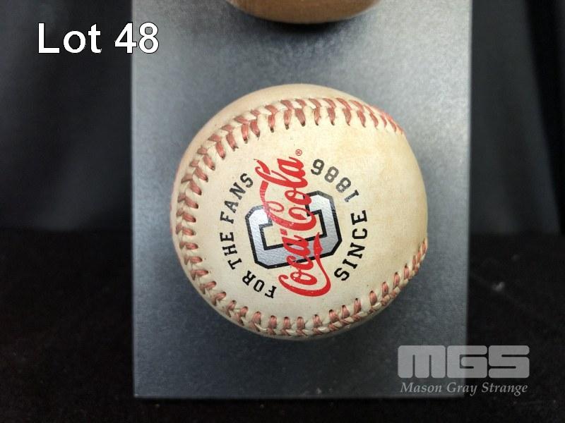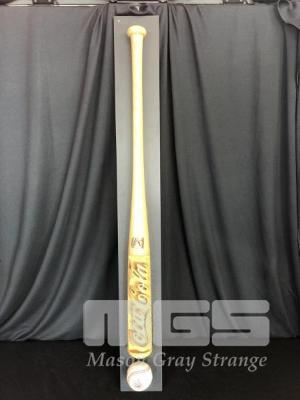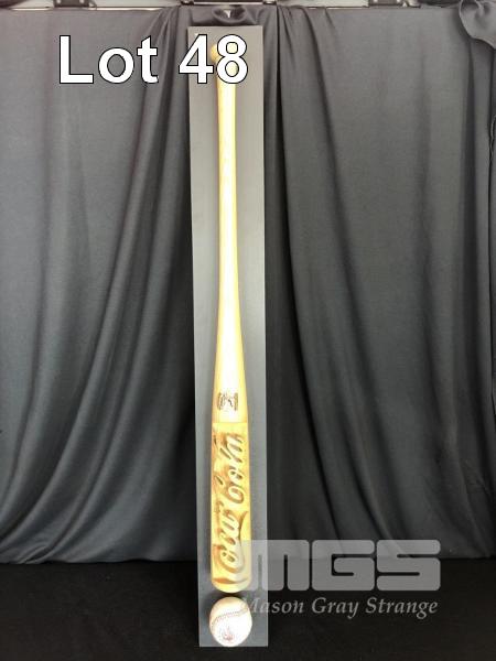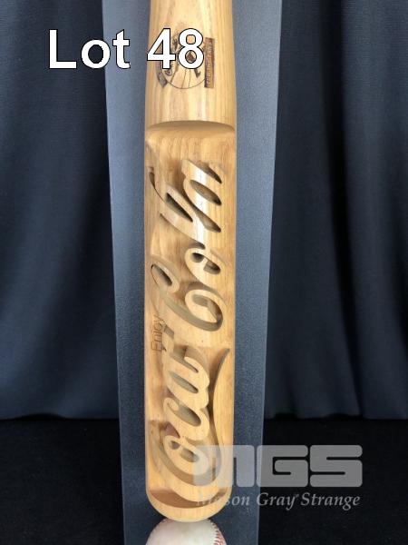 COCA-COLA BASEBALL BAT, CARVED LOGO, MOUNTED ON BOARD