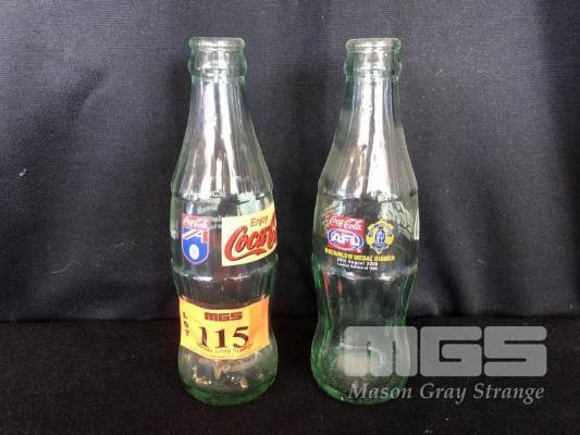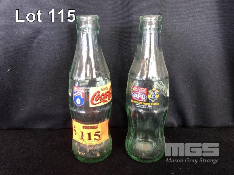 2 x AFL COCA-COLA GLASS BOTTLES, BROWLOW 1999 & 2000