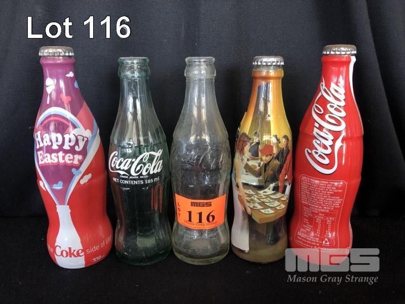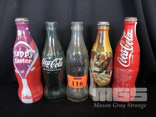 5 x COLLECTABLE GLASS COCA-COLA BOTTLES