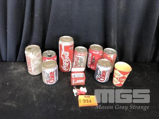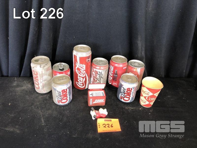 COCA-COLA COLLECTABLES, CANS, CUP, POLAR BEAR & SODA MACHINE
