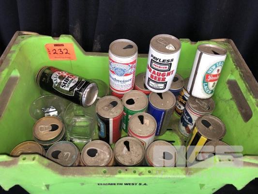 20 x ASSORTED COLLECTABLE BEER CANS, BUD, PAYLESS, KESTNER, AND MORE! WITH 4 x GLASS TUMBLERS