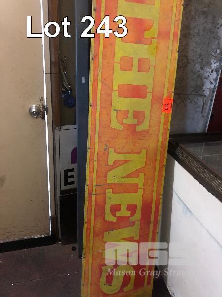 "THE NEWS" SIGN, SHEET METAL ON FRAME, 1800 x 430mm