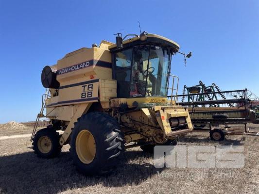NEW HOLLAND TR88 HEADER REG: BPS 656 HOURS: 3,586hours INDICATED S/NO: 559424 WITH HONEYBEE HARVESTER MOD: SP36 S/NO: G22 430992993 36' & TRAILER