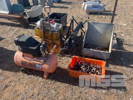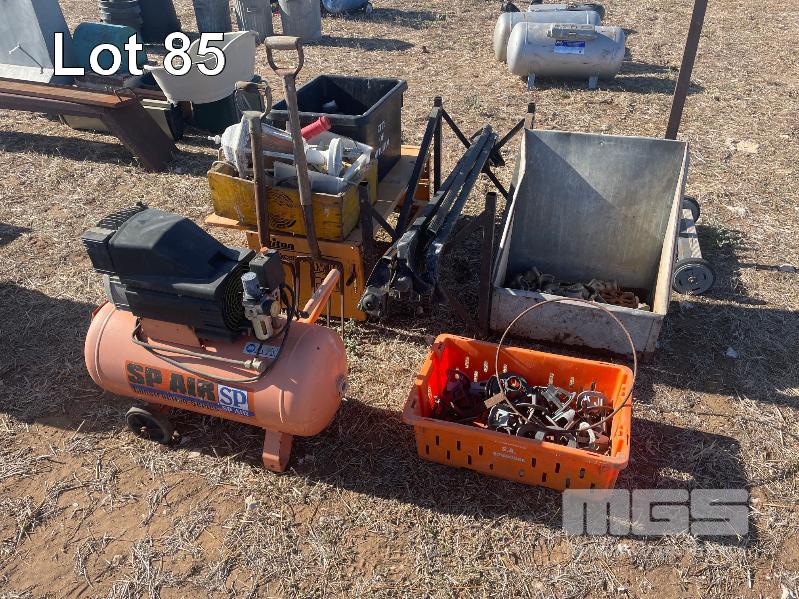 SP COMPRESSOR, TRITON WORK BENCH, GALV FITTINGS ETC
