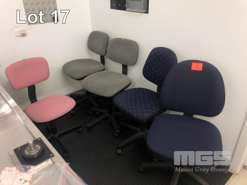 5 x OFFICE CHAIRS, CLOTH VARIOUS COLOURS