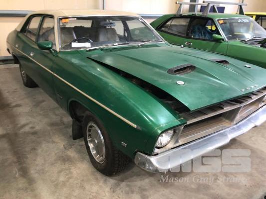 1975 FORD FALCON XB SEDAN REG: SFE 916 ENG: JG23RC93462C 250cc, 6 CYLINDER, AUTOMATIC TRANSMISSION, GREEN DUCO, VINYL ROOF GT BONNET (SOUND CAR)