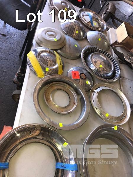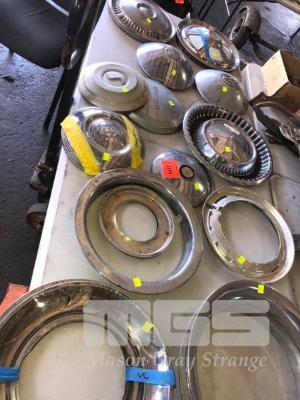 HUB CAPS, STUDEBAKER, DODGE, WOLSLEY, VW & TRIM, 1 x TABLE