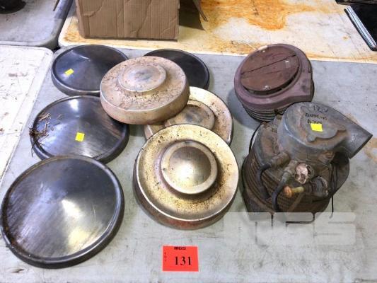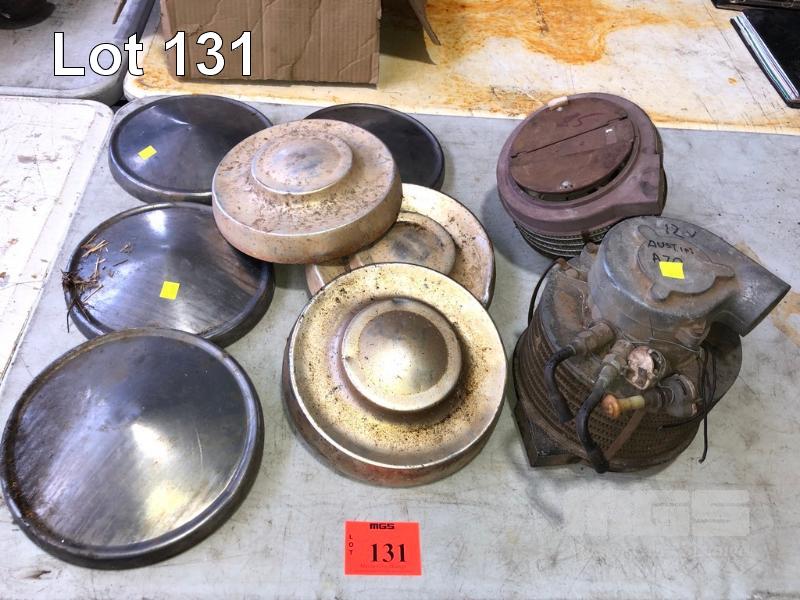 HUB CAPS, AUSTIN A70 HEATERS & ASSORTED LEAF SPRINGS (ON GROUND)