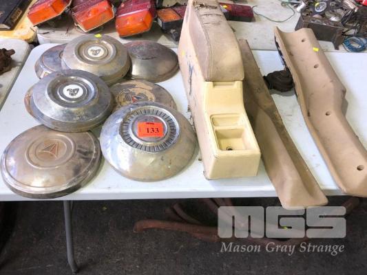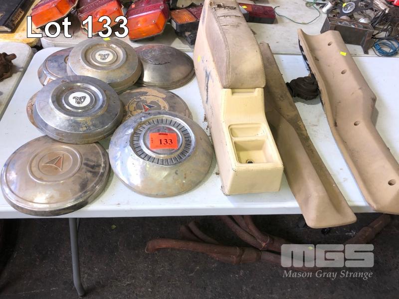 ASSORTED GM & CHRYSLER HUB CAPS & GM CONSOLE & TRIMS