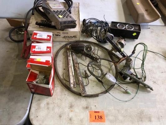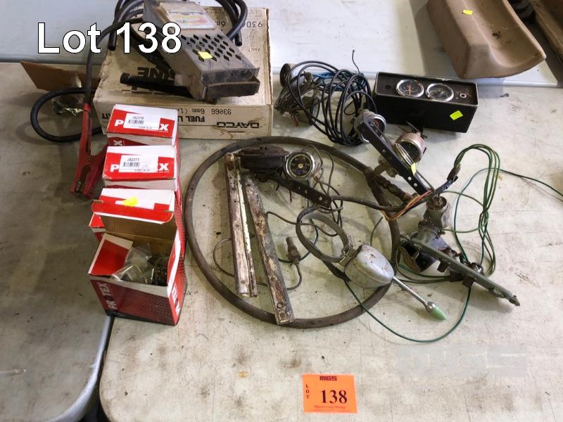 4 PROTEC WHEEL CYLINDERS & ASSORTED ANTIQUE GAUGES, HOSE & BATTERY TESTER