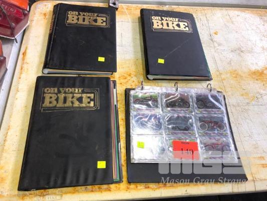 4 x FOLDERS & CONTENTS, VARIOUS BIKE MAGAZINES & COLLECTABLE CARDS