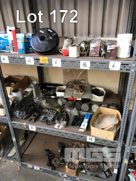 FORD COMPONENTS, BRAKE PADS, BOOSTER, TRANSMISSION, ENGINE, ROLLER ROCKERS, ETC, 3 x SHELVES