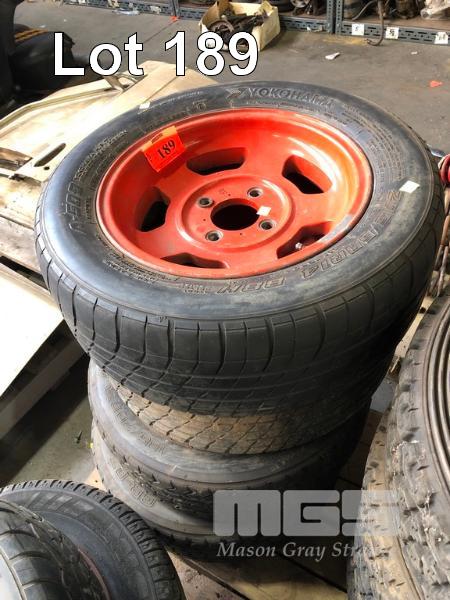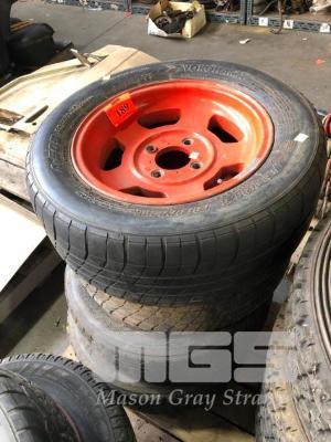 SET 4 ALLOY RIMS & TYRES, 2 x 205/60R14, YOKOHAMA & 2 x 185/70 R14 YOKOHAMA TYRES, FIT DATSUN